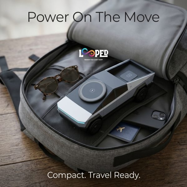 Inspired by a futuristic truck design, this charging station stands out with its sleek, sculpted form and modern aesthetic. The compact structure makes it a perfect fit for both workspaces and bedside tables, adding a touch of personality while maintaining a clean, organized look. Its unique design isn’t just about style—it’s also highly practical, with clearly defined charging zones that keep each device securely in place.