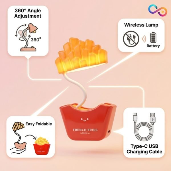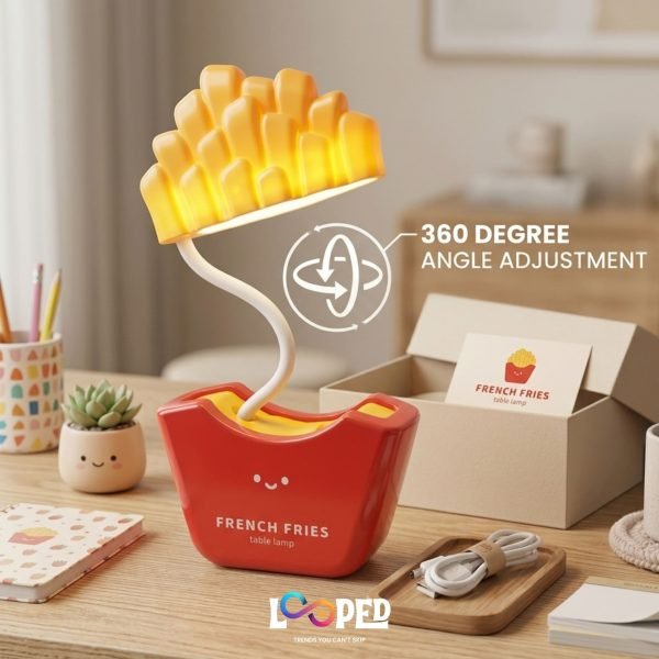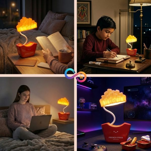 - Unique French Fries Design Lamp – Styled like a delicious French Fries with a fun spring lid, this quirky lamp brings a playful touch to any kid’s room or study desk.