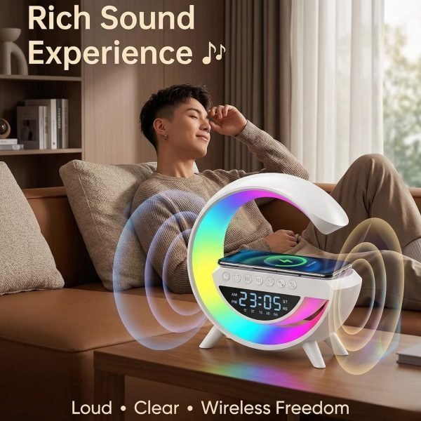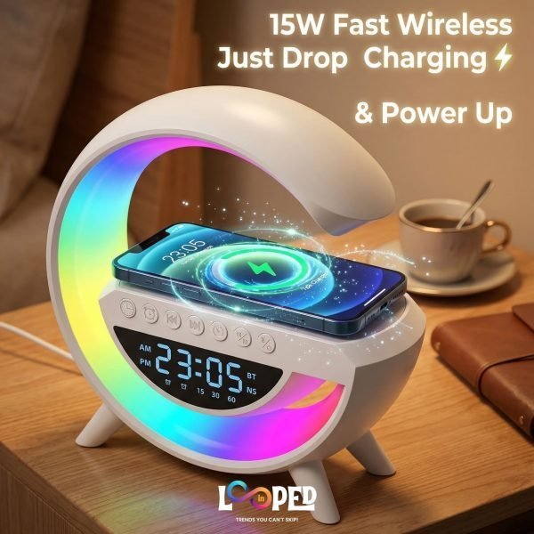 G Shape Wireless Charger with Lamp Speaker and Digital Clock