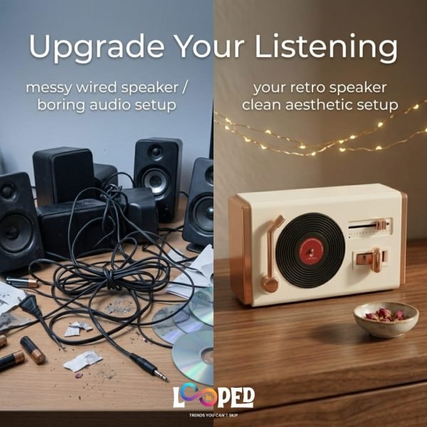 Its compact and lightweight design makes it easy to carry anywhere, whether at home, outdoors, or while traveling. The retro-inspired look adds a classic charm, making it both a functional audio device and a decorative piece.