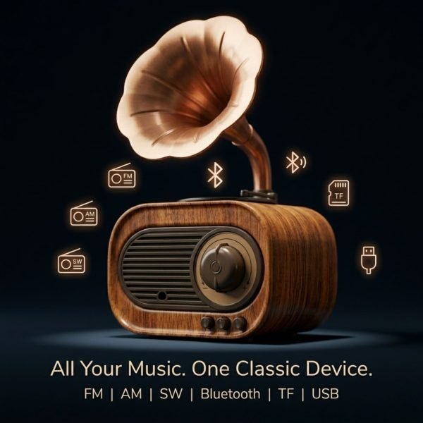 Mini Retro Portable Bluetooth Speaker with USB, AUX and Radio