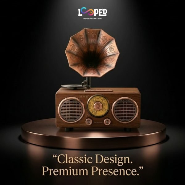 The retro design adds a timeless charm to any space, while the compact build makes it easy to place on desks, shelves, or bedside tables. Despite its classic appearance, it delivers clear and balanced sound suitable for everyday listening.