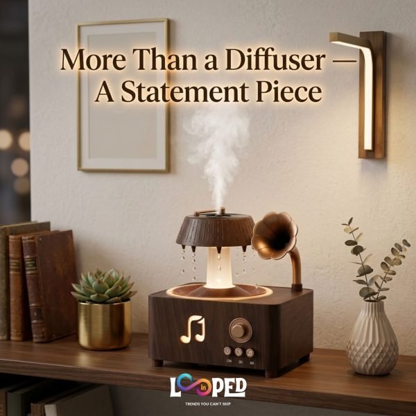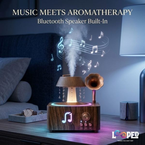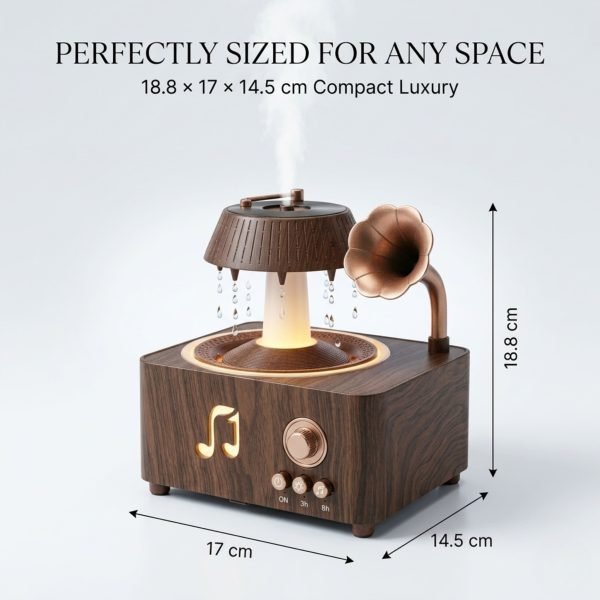 Vintage Record Player Style Diffuser with Waterfall Mist and Bluetooth Speaker